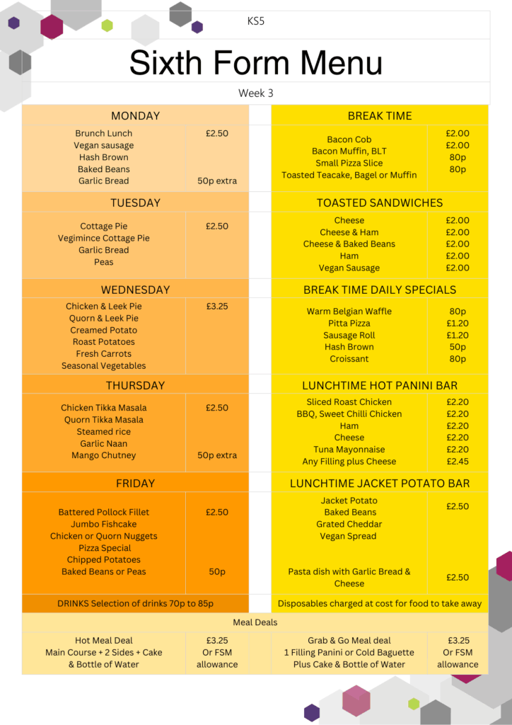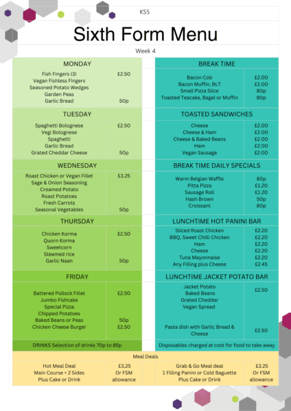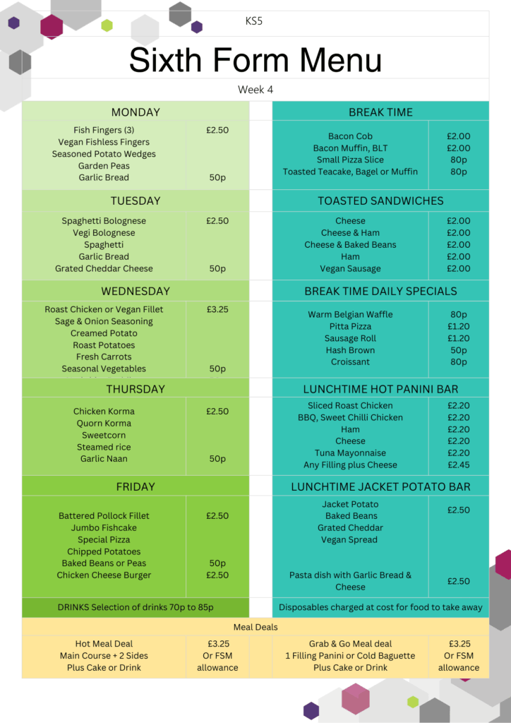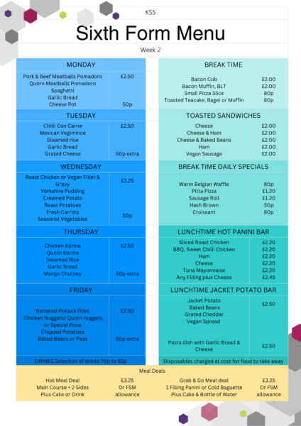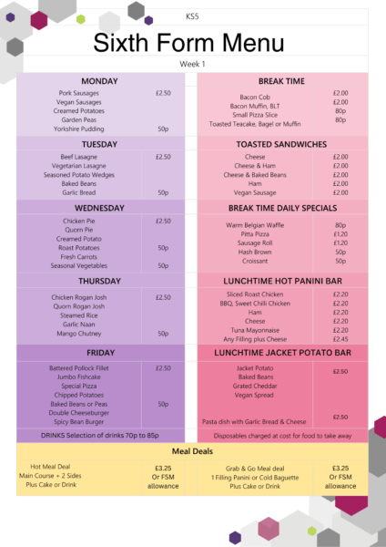 Sixth Form Menus